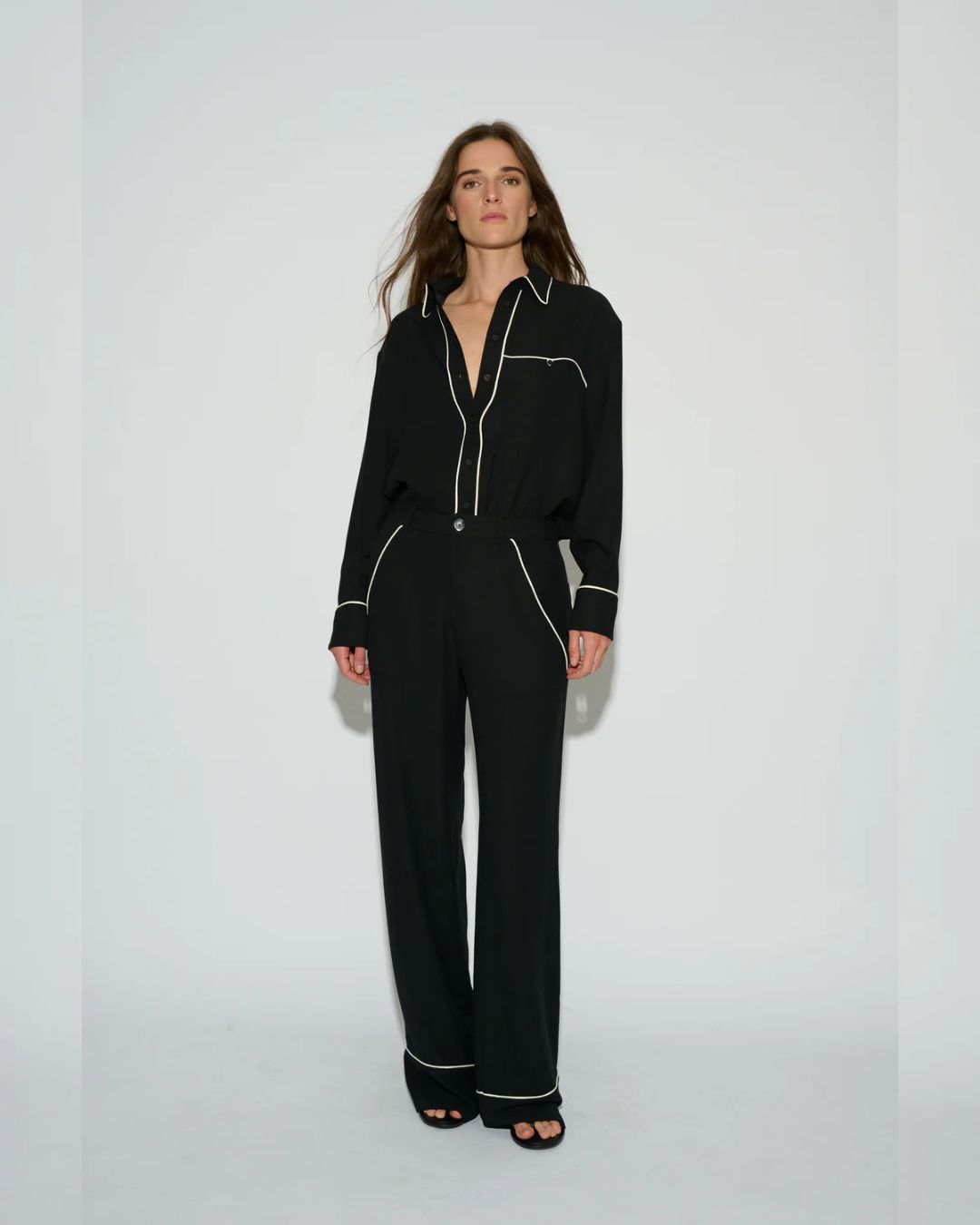 En Llenas 1953 hemos seleccionado la camisa Nixie Black de BADITS, una prenda clave dentro de nuestra propuesta de moda mujer por su versatilidad y diseño atemporal. Puede llevarse como total look junto a su pantalón a conjunto o combinarse por separado para crear estilismos más urbanos y actuales.