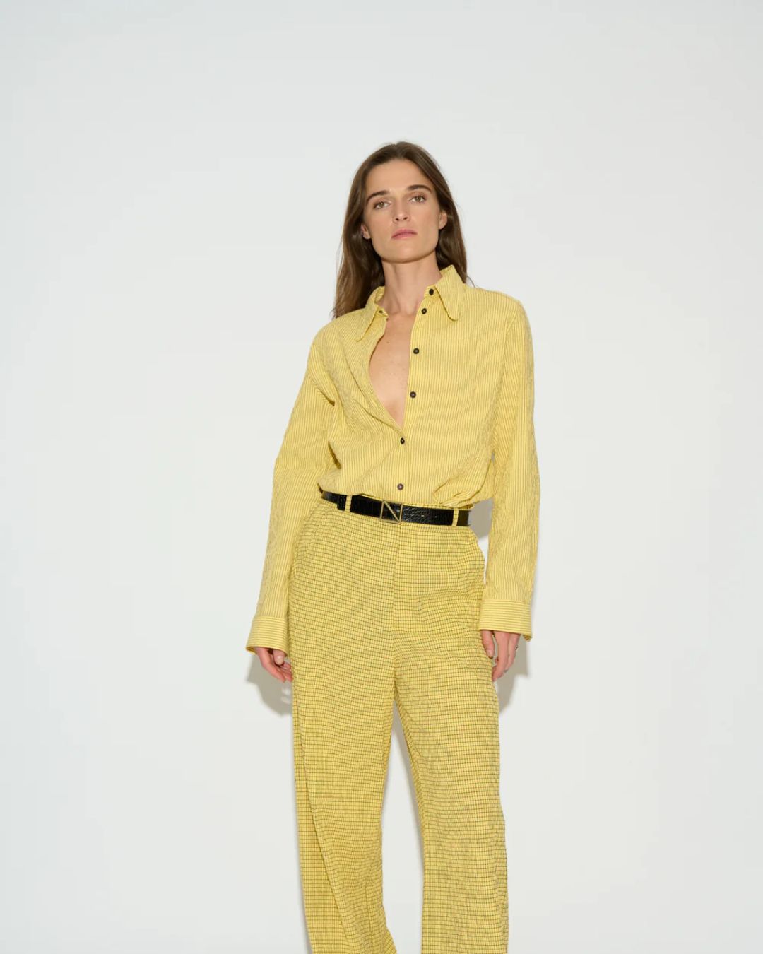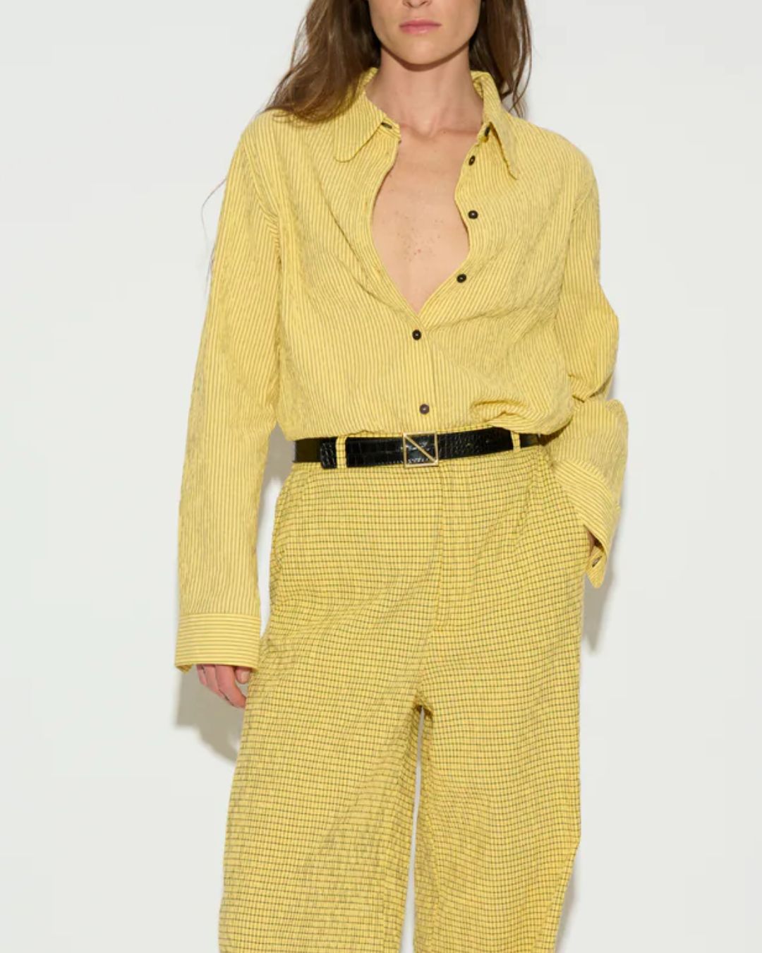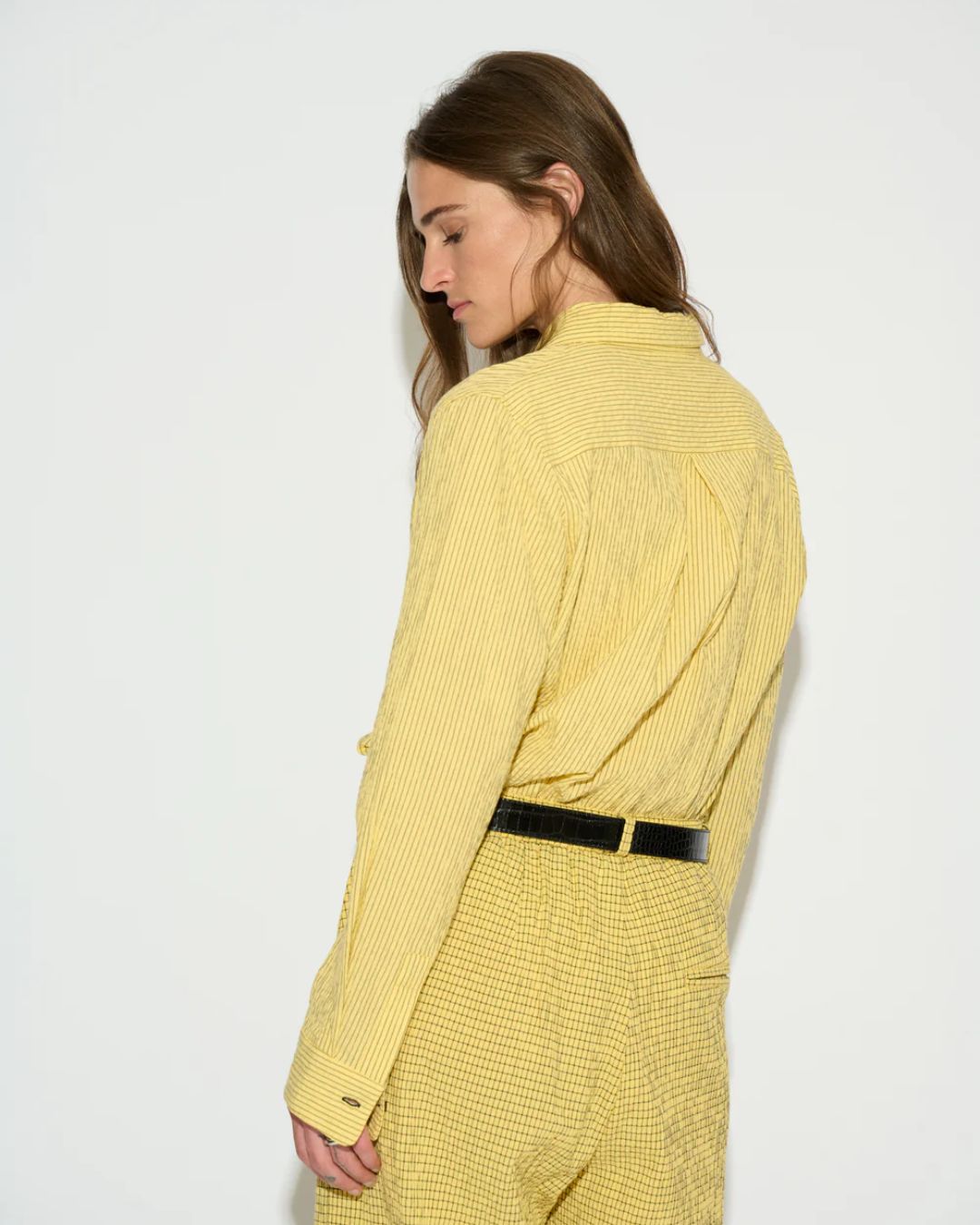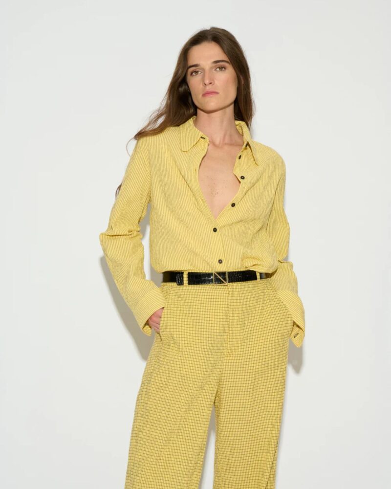 Descubre la camisa de rayas de la firma Badits para mujer, una prenda con carácter y estilo pensada para esta temporada de primavera verano en Llenas. En color amarillo con líneas negras, esta camisa aporta un aire fresco, moderno y muy actual, ideal para looks femeninos con personalidad.