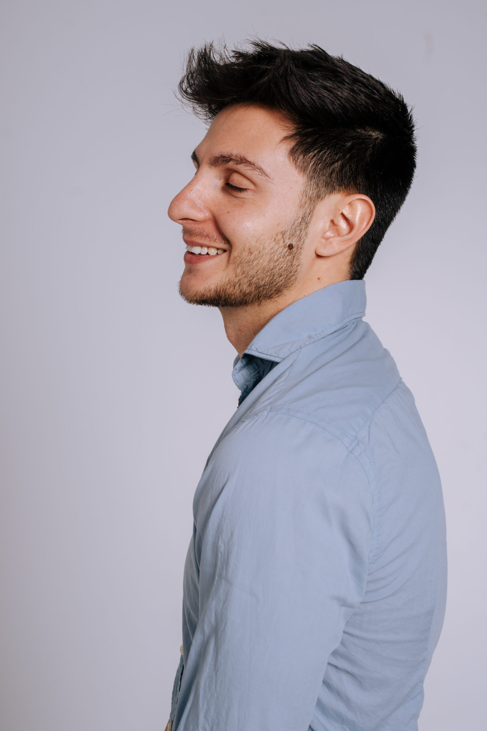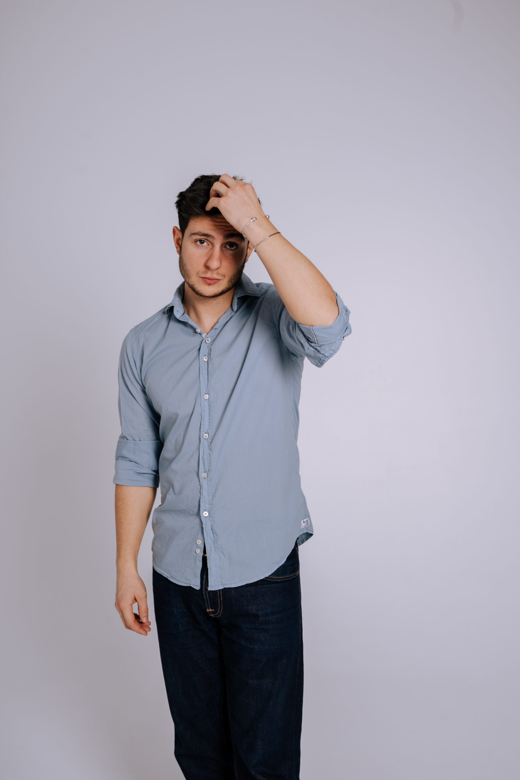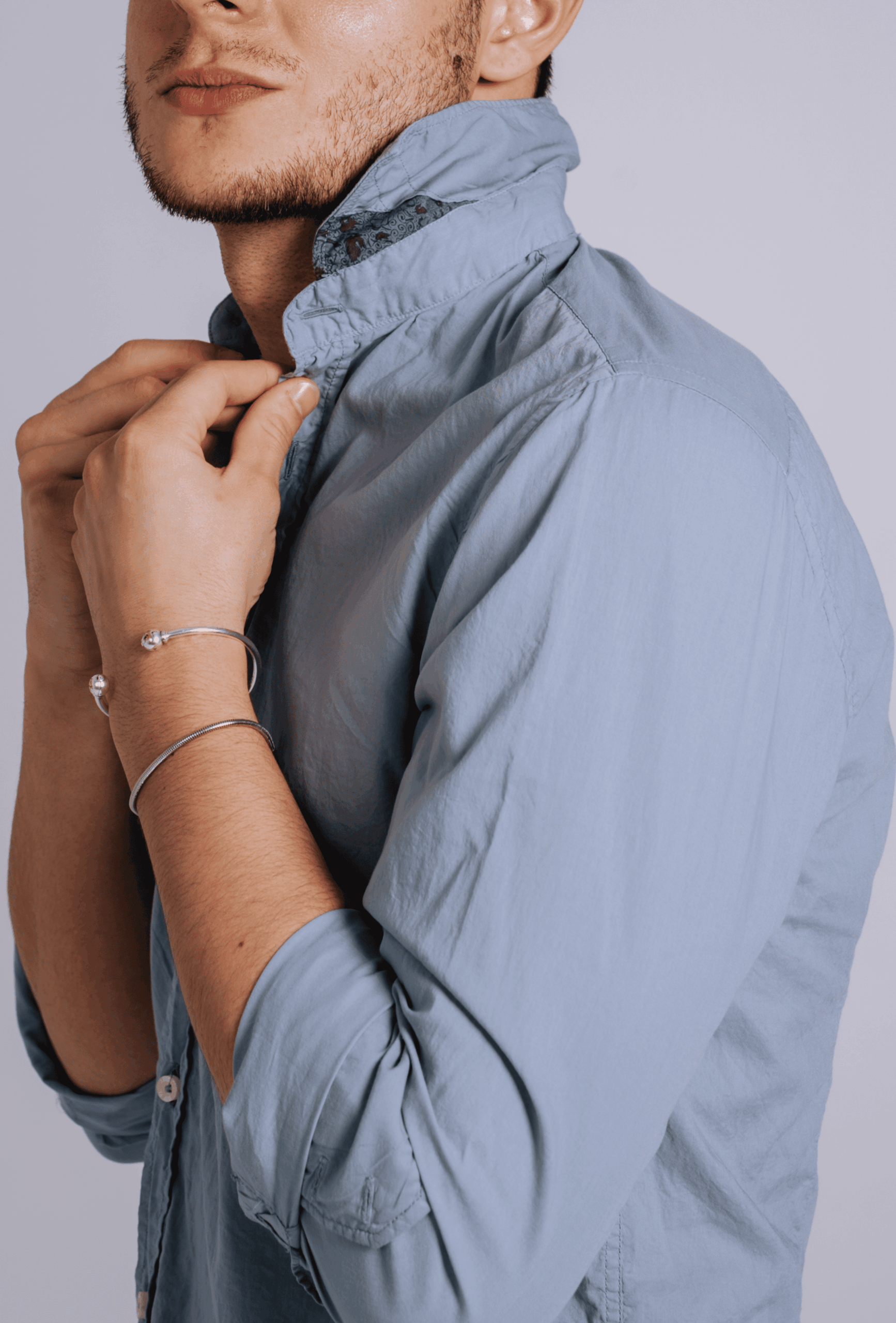 Una camisa confeccionada en 100% algodón extrafino de alta calidad, con un diseño sofisticado que destaca por su proceso artesanal de tintado, logrando una tonalidad azul piedra única y una textura excepcional.