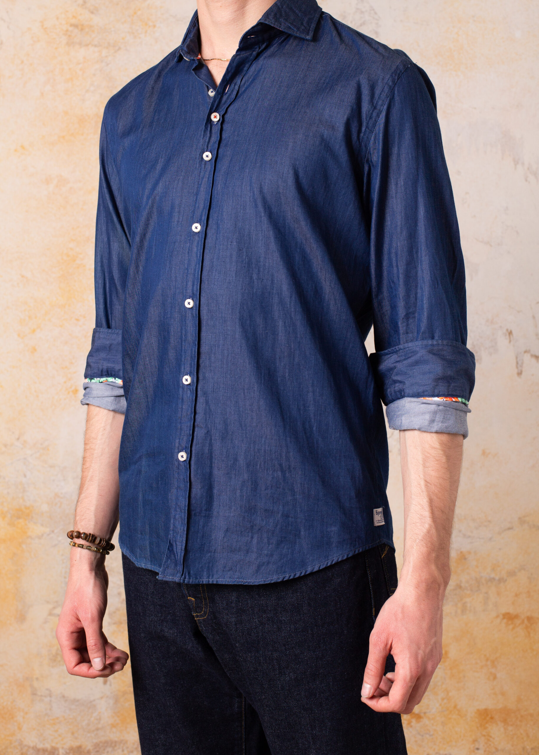 - Detalles en contraste con un mini dibujo en la parte interior de la camisa, en el área de los botones, el cuello y los puños.