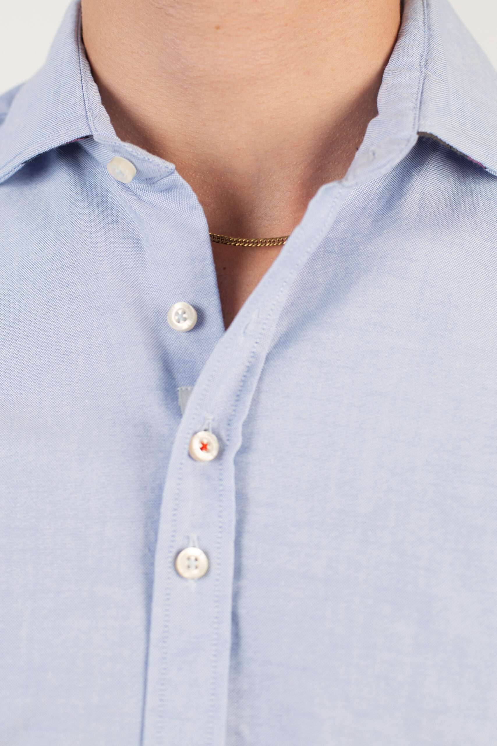 Camisa confeccionada en 100% algodón Somelos, Oxford azul de alta gama, suave y transpirable. Su diseño limpio y elegante incorpora detalles que reflejan la atención al detalle y el cuidado artesanal de Bjovuit.