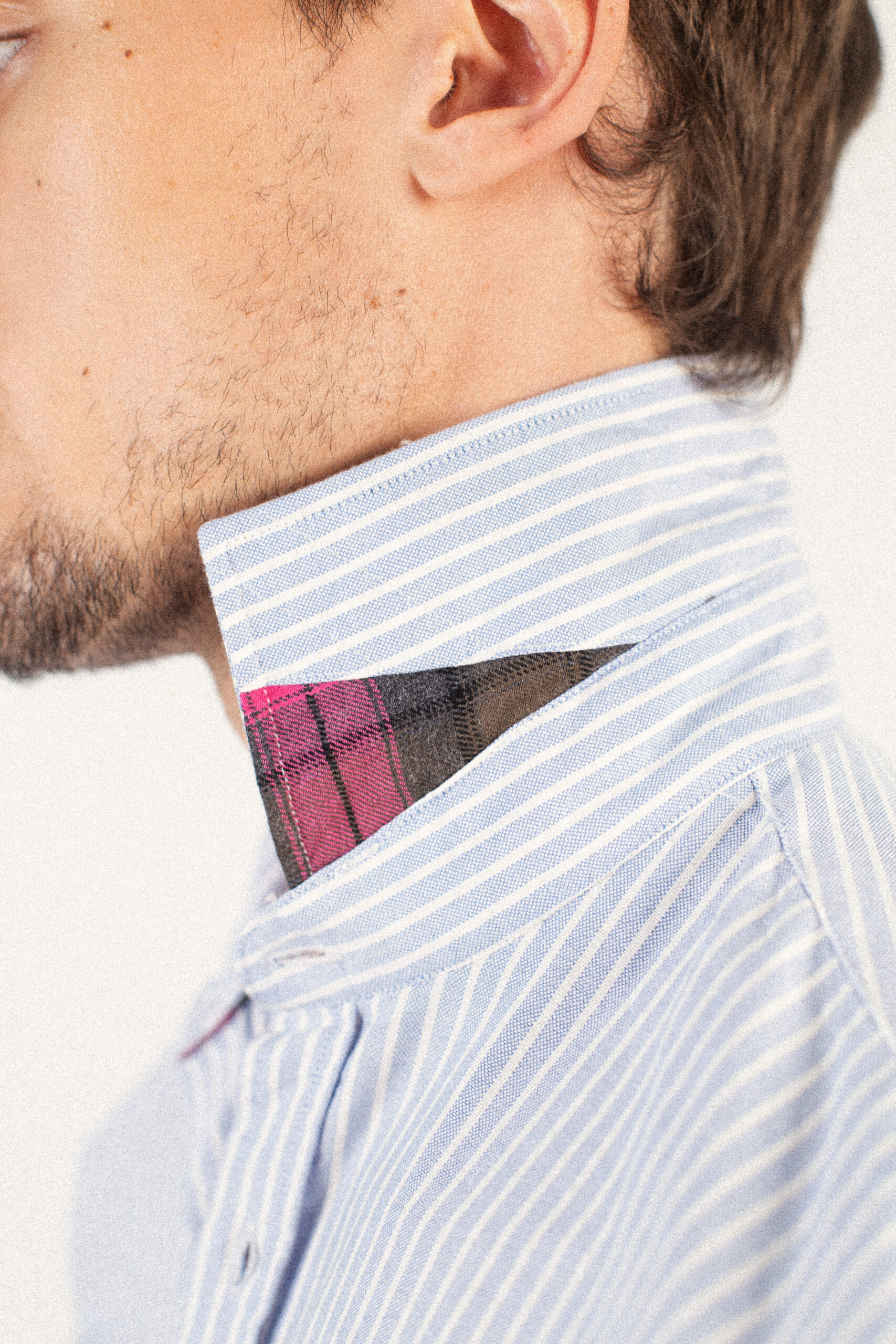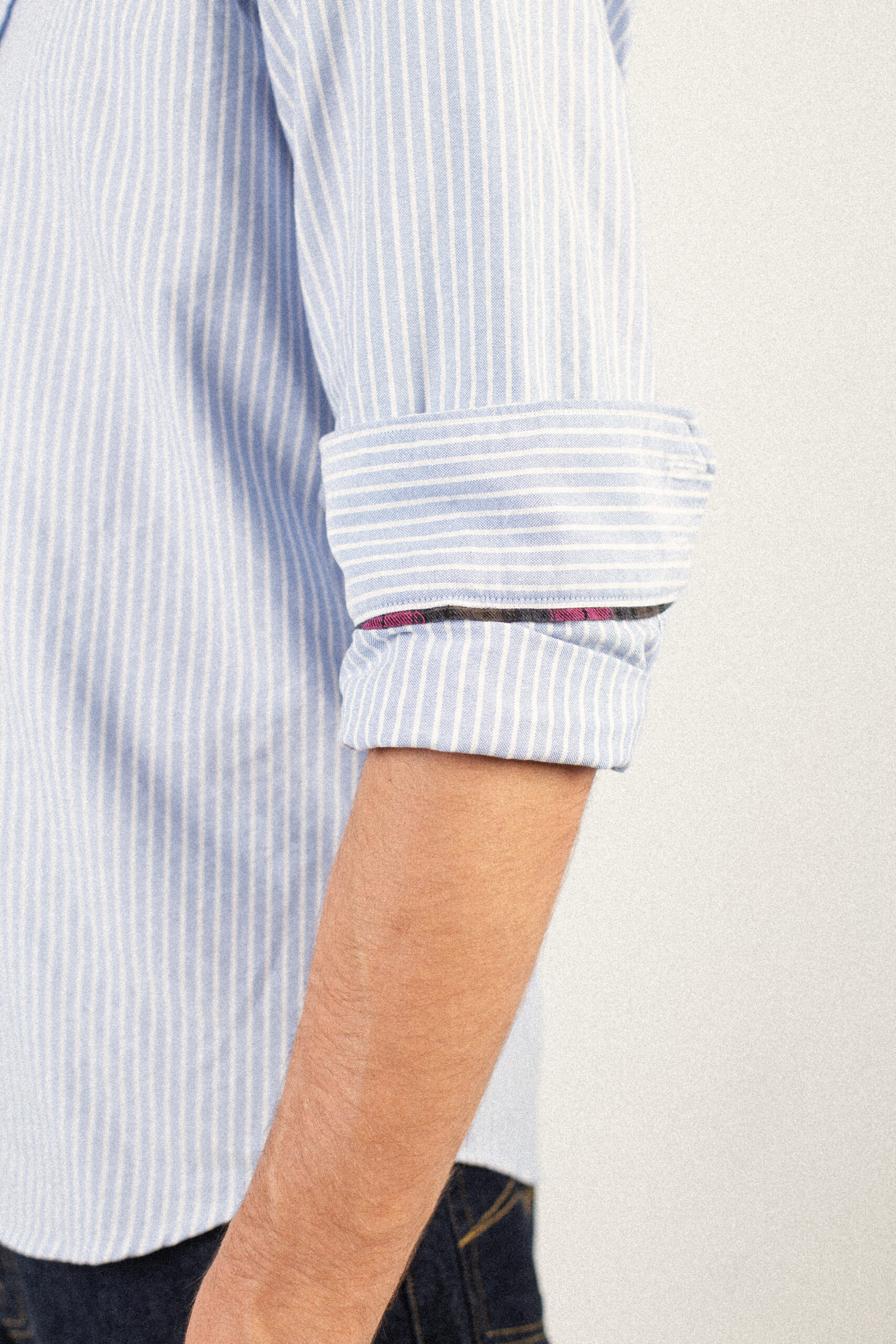 - Sutil detalle de estampado de cuadros en el interior del cuello y en los puños, que aporta un toque elegante y distintivo.