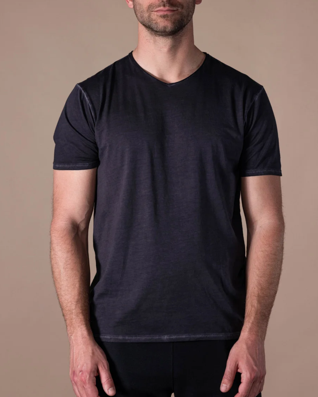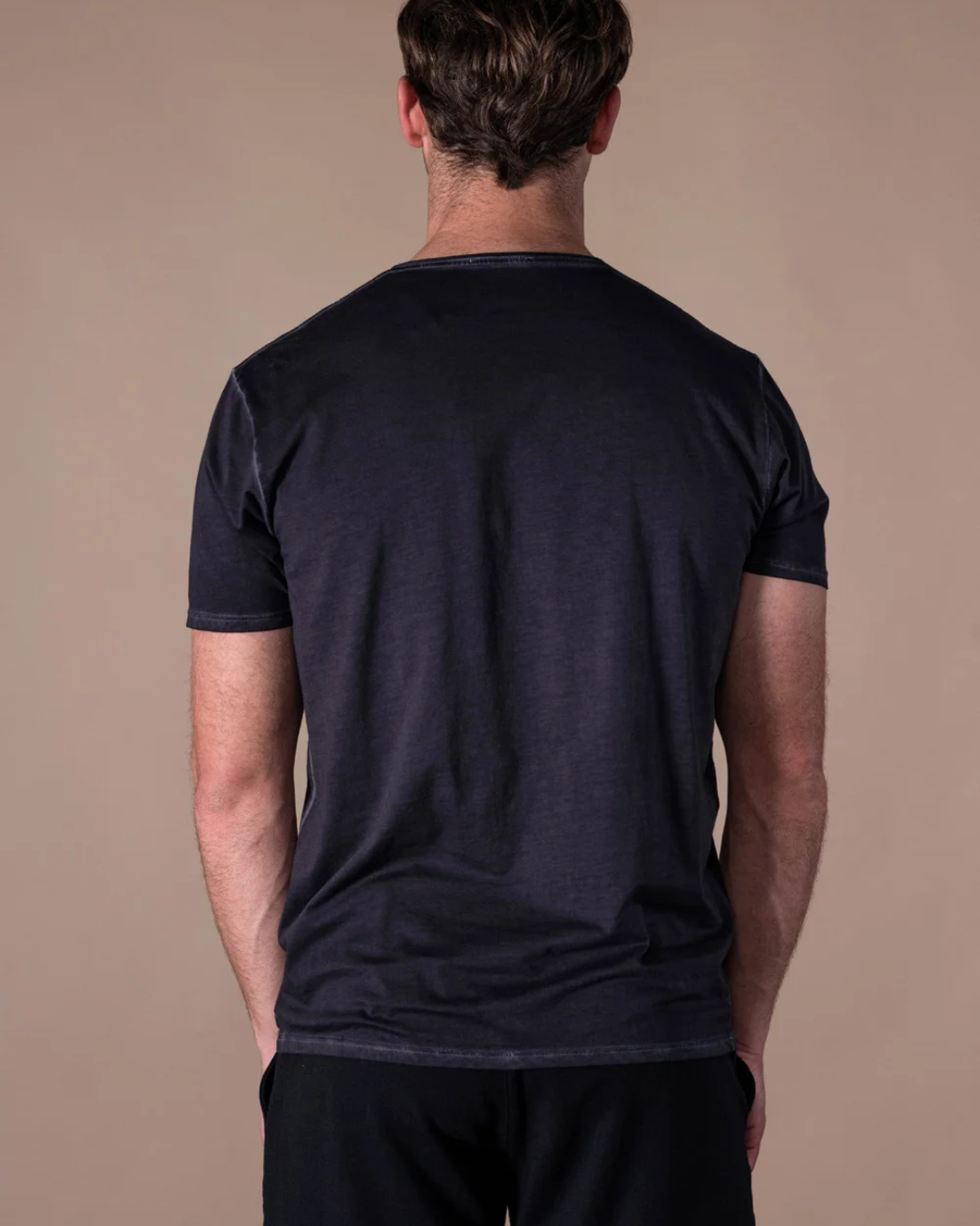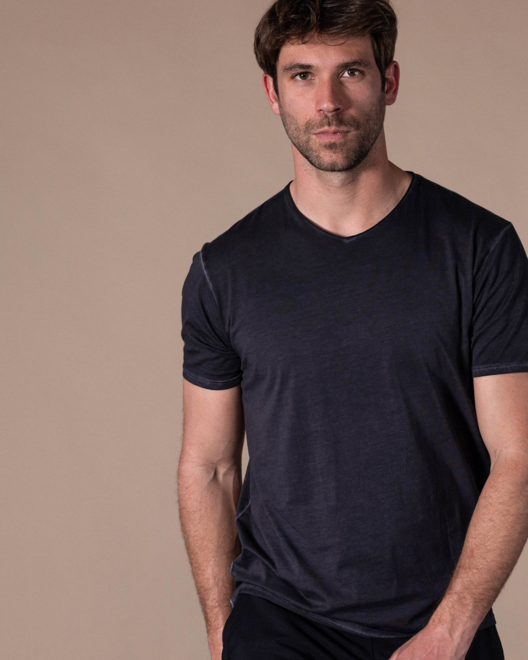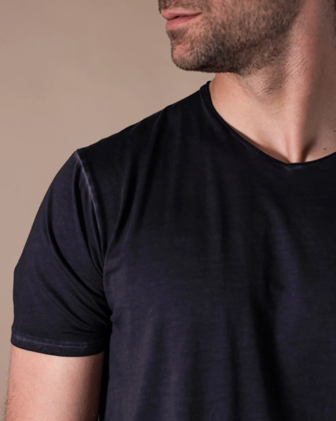 Un básico atemporal con acabado washed y cuello de pico, que aporta un look relajado y versátil. En tono black washed, ofrece un estilo sobrio y fácil de combinar.