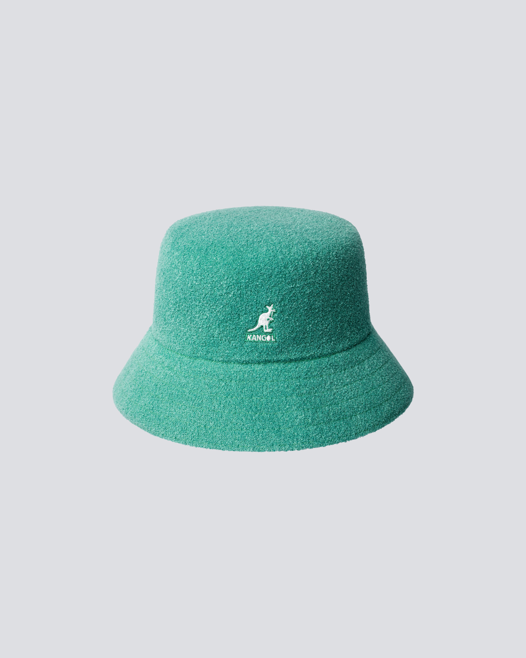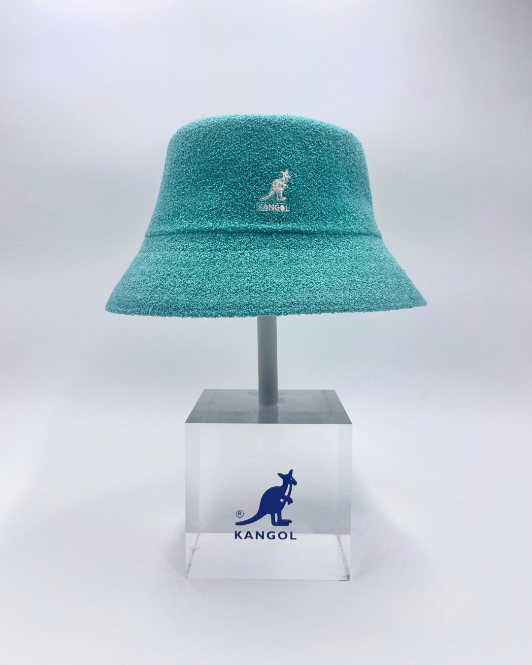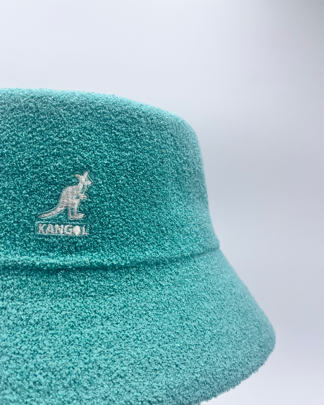 • Este Bucket Hat Kangol en color azul aqua turquesa está confeccionado en su icónico tejido estilo toalla, suave y transpirable, perfecto para la temporada Primavera-Verano.