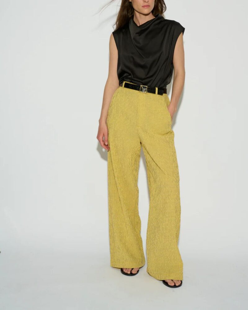 Pantalón de cuadros de la firma Badits para mujer, disponible en Llenas, diseñado para crear un total look de verano moderno, atrevido y con mucha personalidad.