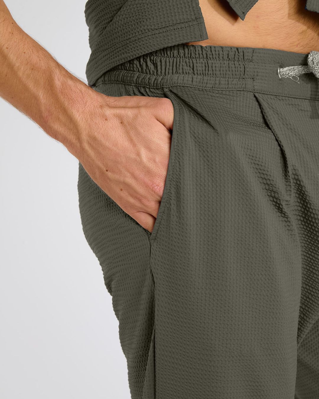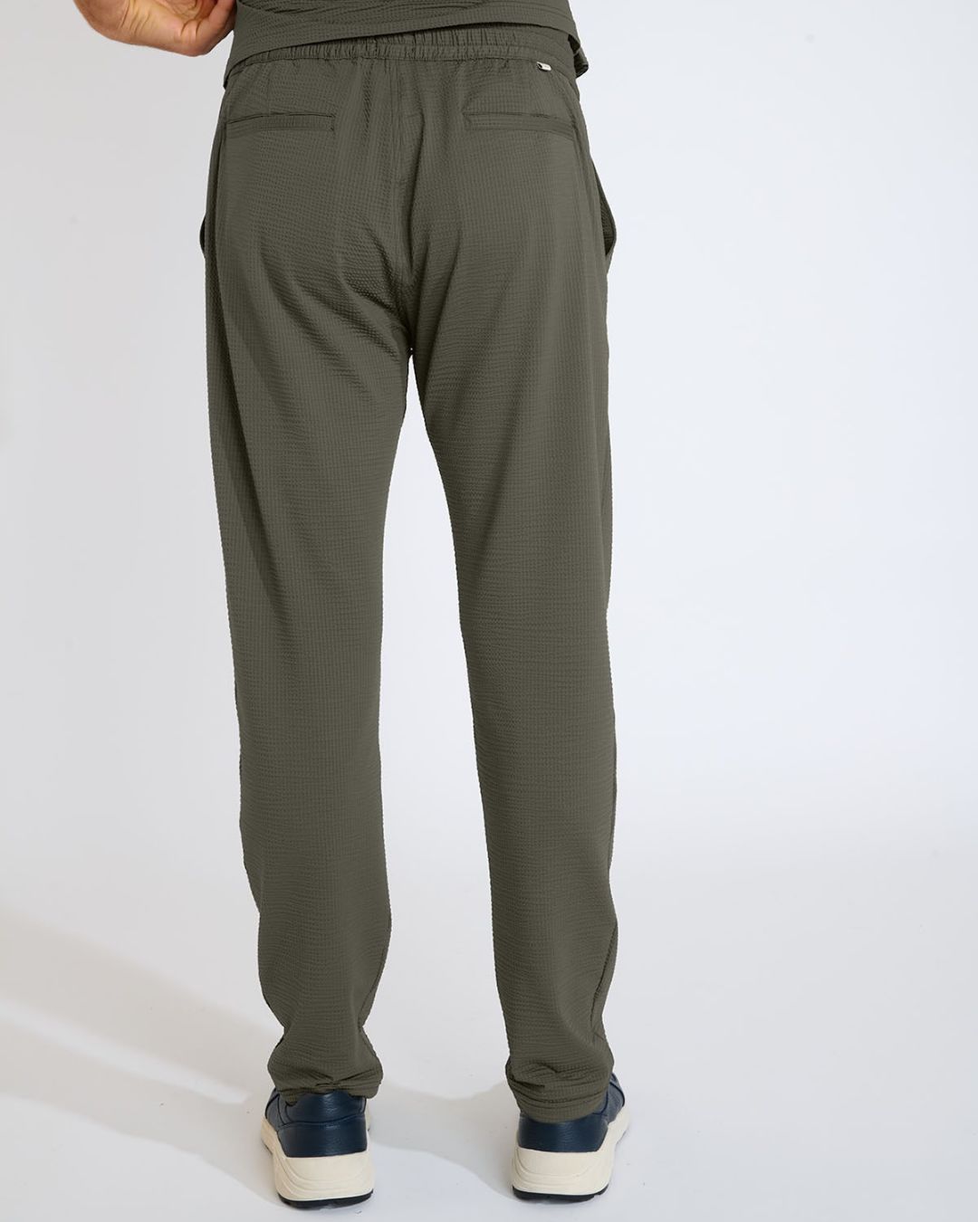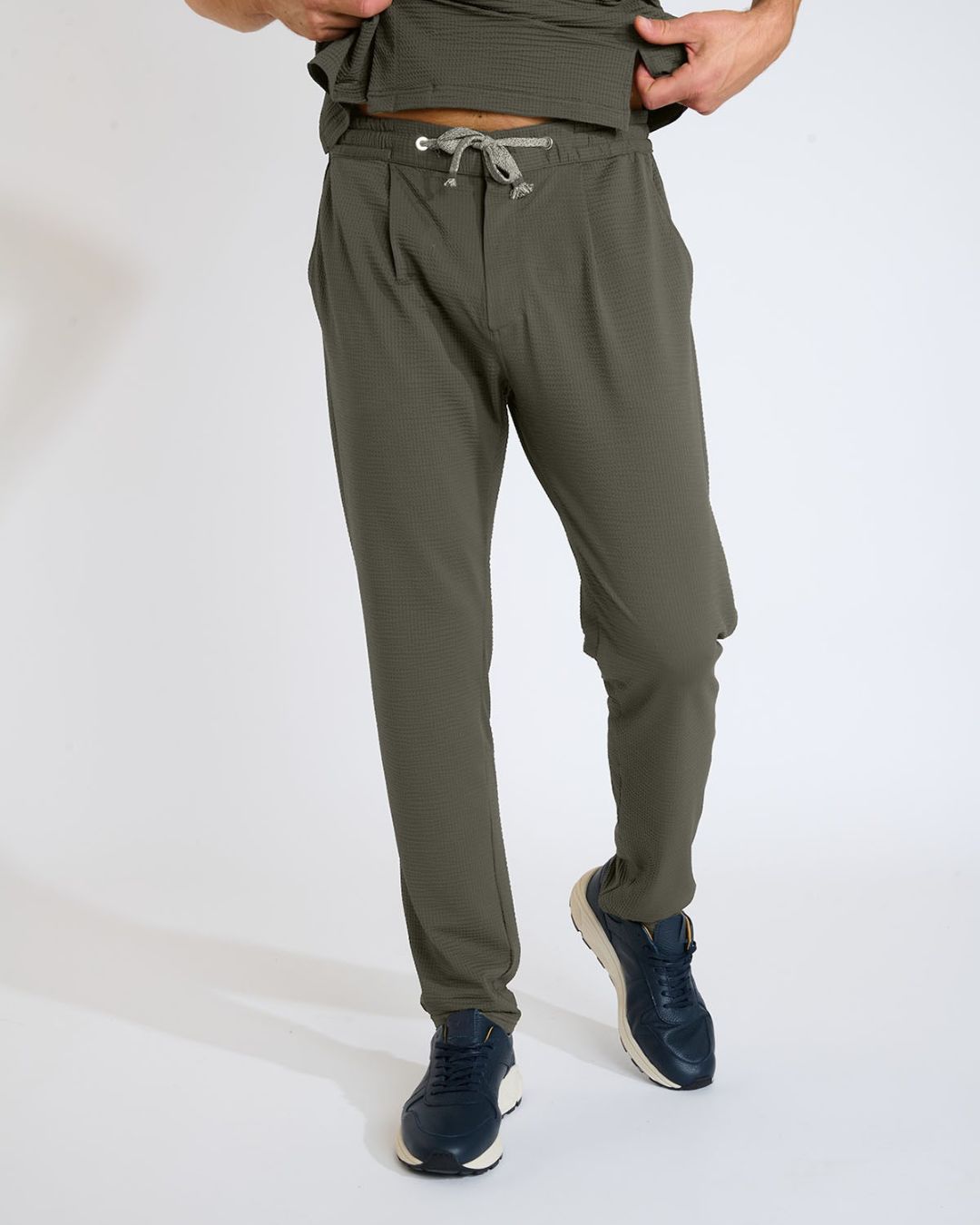 La cintura elástica con cordón ajustable garantiza un ajuste perfecto durante todo el día, mientras que los acabados cuidados como los bolsillos italianos delanteros y los bolsillos traseros con vivo refuerzan su carácter versátil y sofisticado.