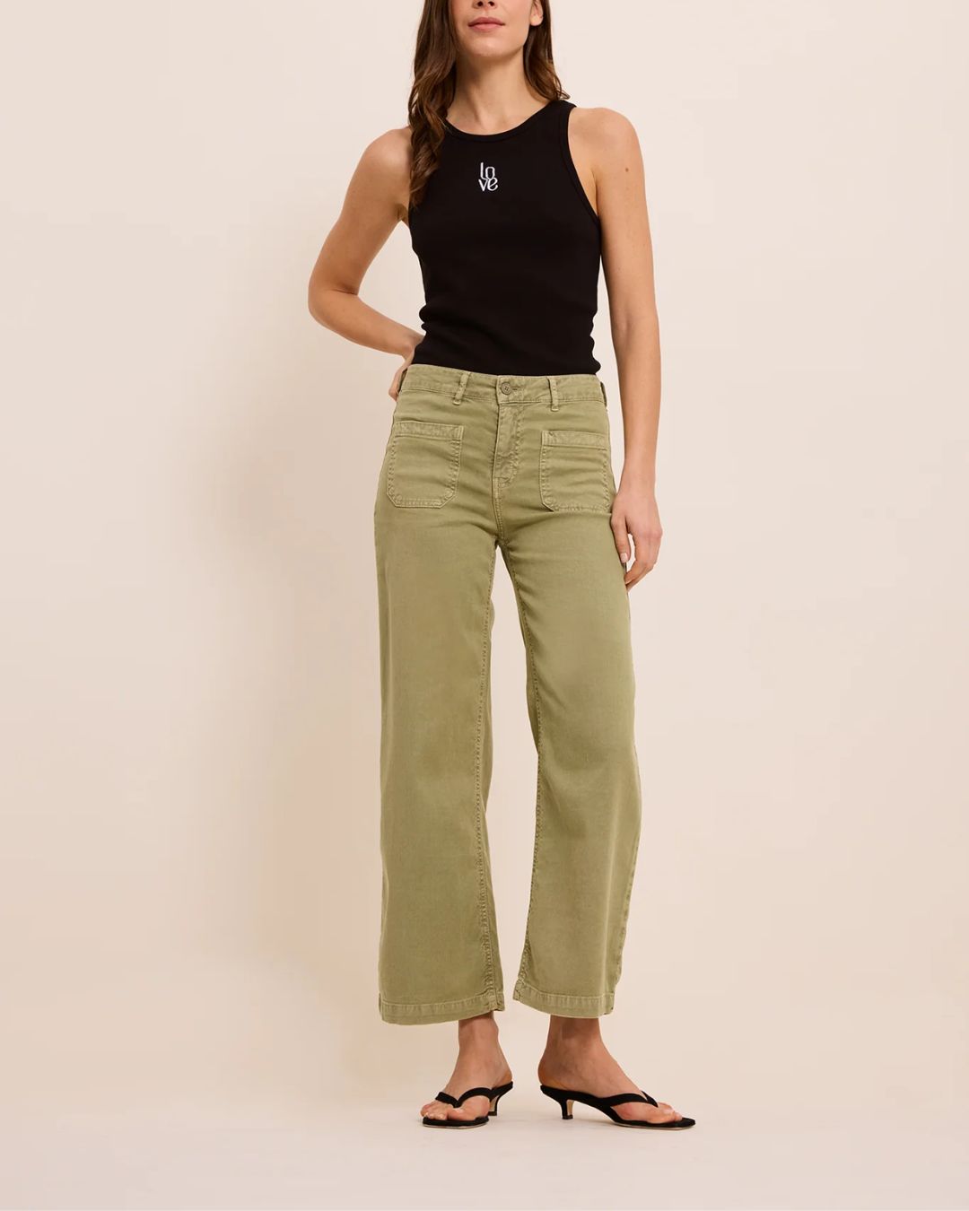 Pantalón Lucia verde de FIVE para mujer. Diseño de corte ancho en algodón, cómodo y versátil para el día a día.