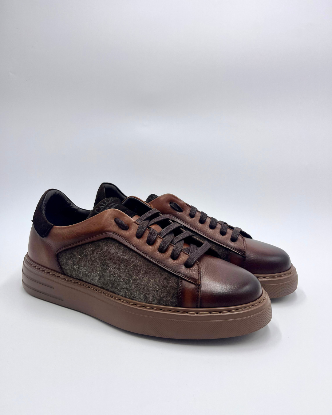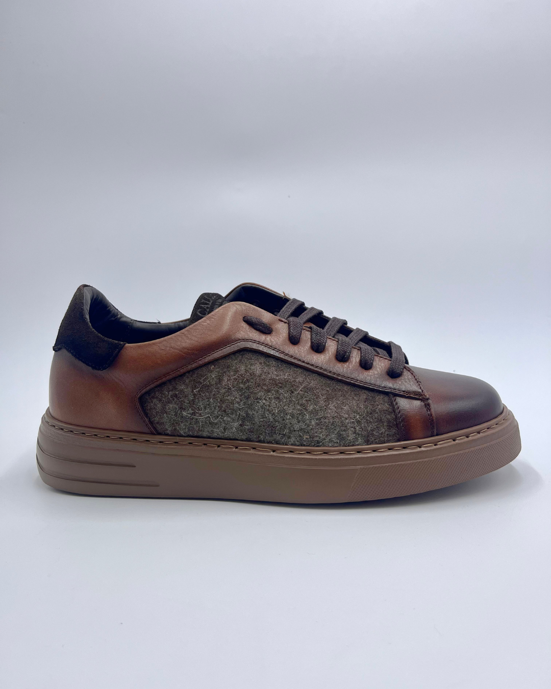 El modelo Calce Washer Tabaco combina piel natural en tono marrón tabaco con inserciones de tejido mezcla de piel y lana en los laterales, creando un contraste sutil y sofisticado. Su diseño de líneas limpias y acabado artesanal refleja el equilibrio perfecto entre estilo contemporáneo y tradición zapatera.
