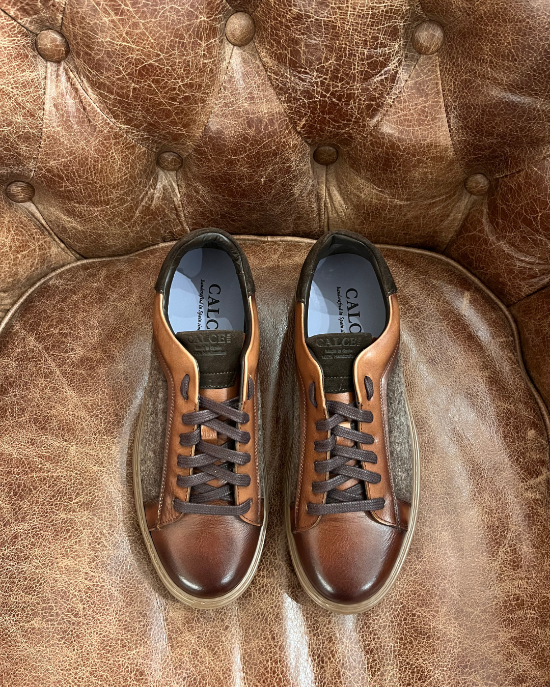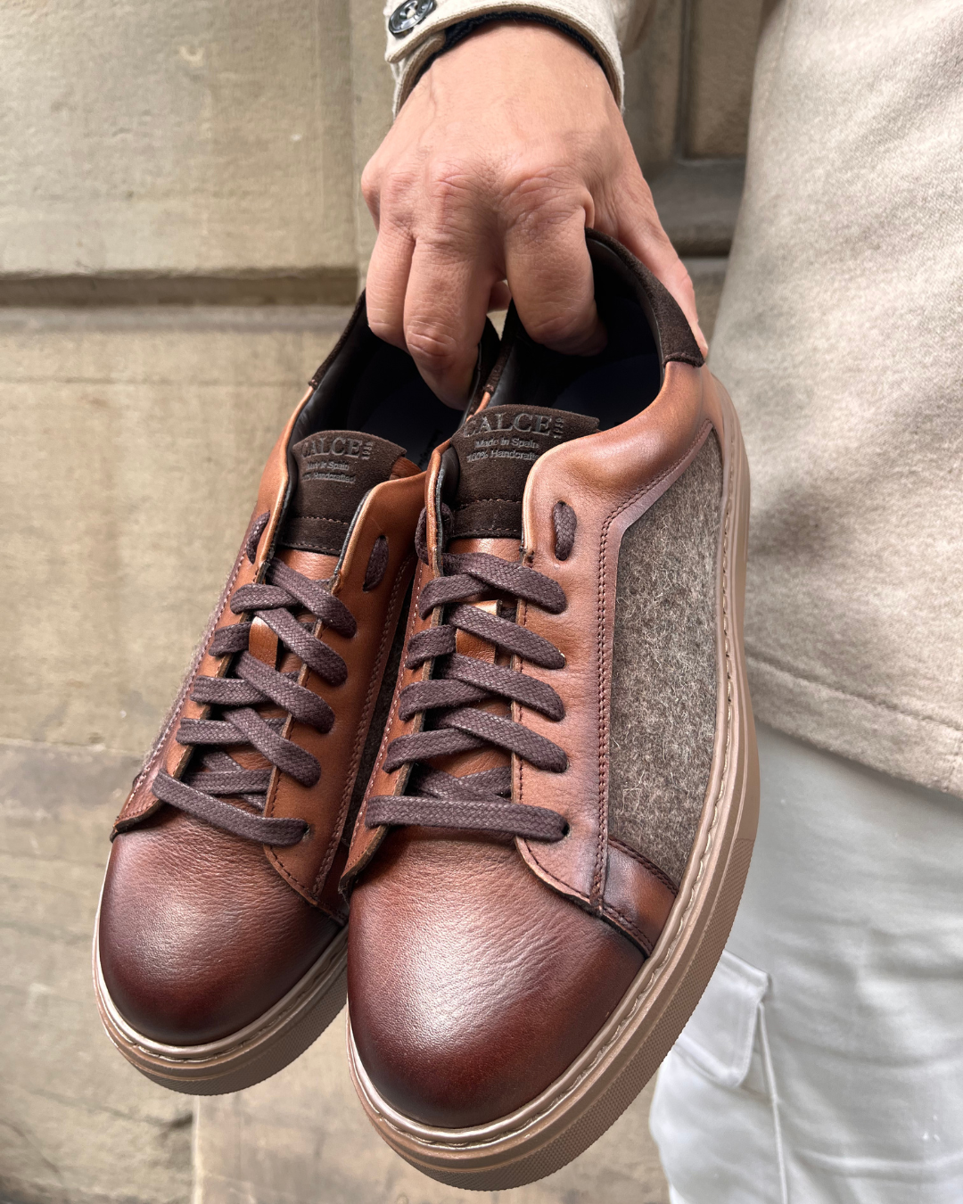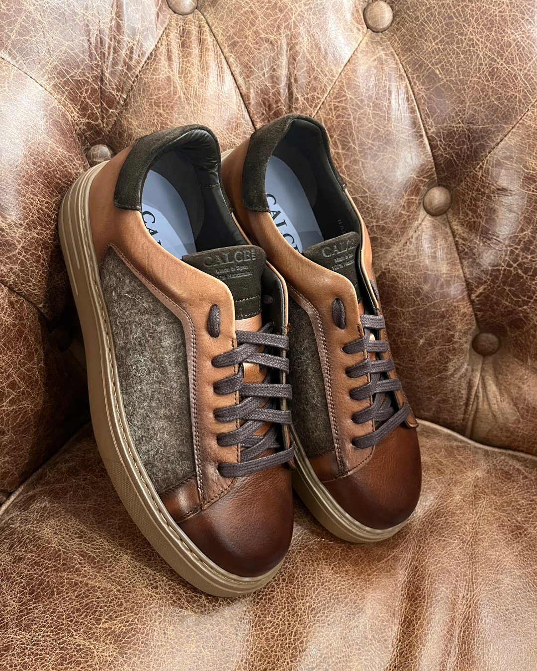 Made in Spain · Handmade · 100% Leather & Wool Blend Fabric