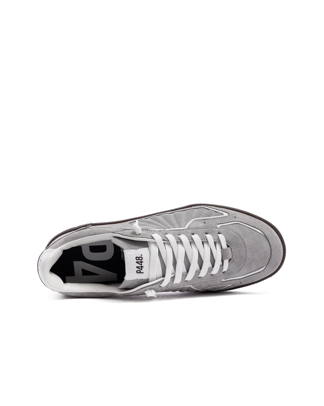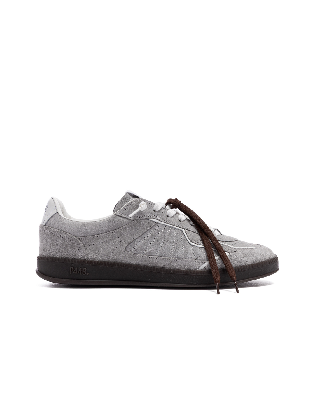 Sneaker P448 John Total Grey Hombre – Suela Marrón Oscuro y Cordones Blancos con Recambio Marrón